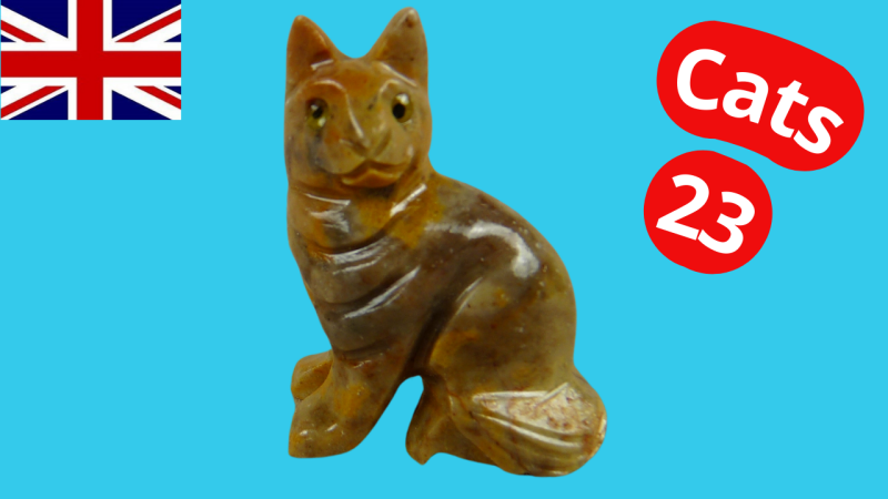 23. Works of art, cats out of onyx, soapstone, quartz, jade, salt stone and more.